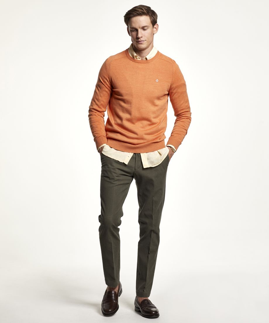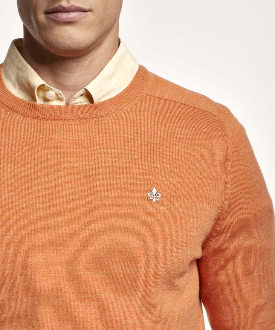 Knitted oneck made of our popular merino wool quality from Biella Südwolle. The sweater has ribs at cuff and bottom hem. Normal fit. Embroidered lily at left chest100% Merino WoolHand wash