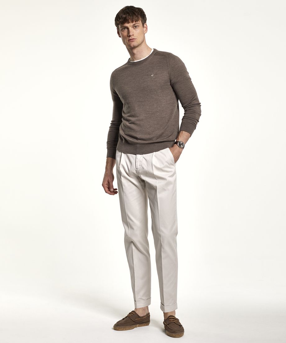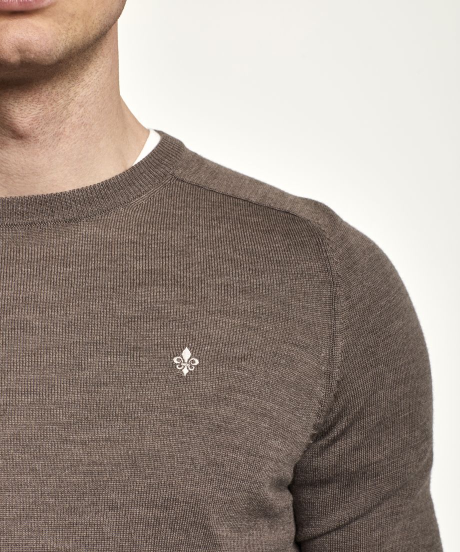 Knitted oneck made of our popular merino wool quality from Biella Südwolle. The sweater has ribs at cuff and bottom hem. Normal fit. Embroidered lily at left chest100% Merino WoolHand wash