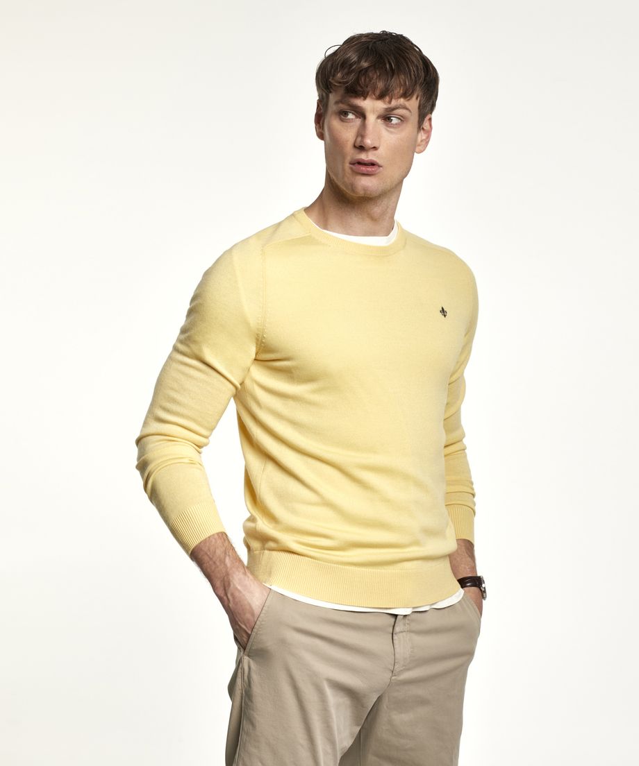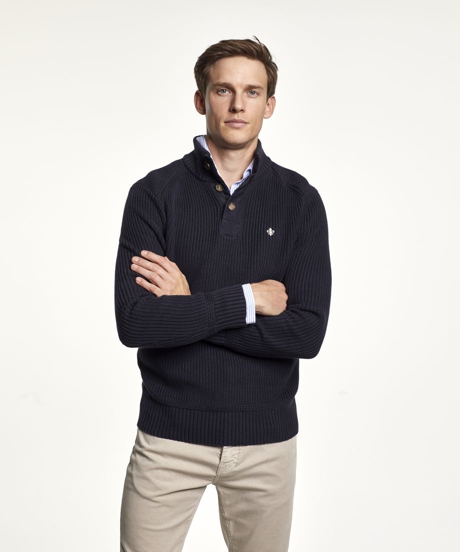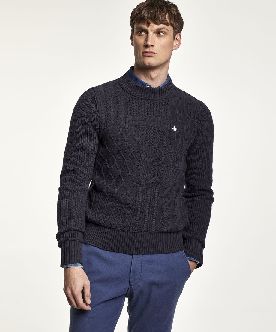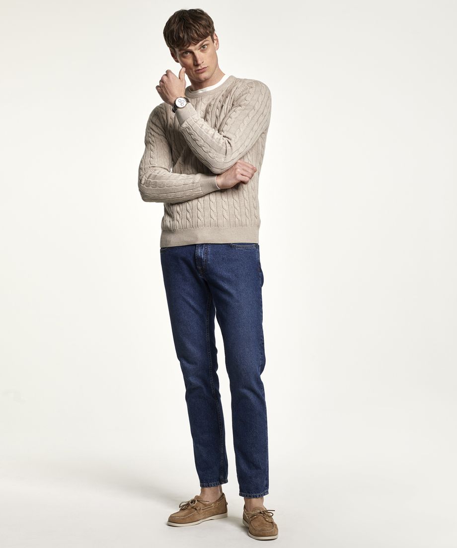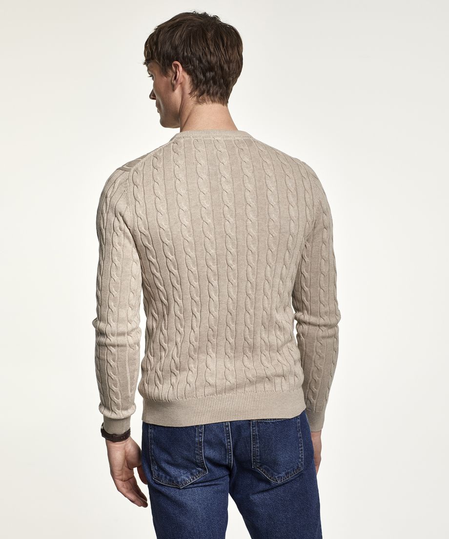 Classic cable knit in pima cotton, with oneck and ribs at cuff and bottom hem. Pima cotton is an extra-long cotton fiber, that gives a softer handfeel and lustre. Normal fit. Embroidered lily at left chest100% CottonHand wash