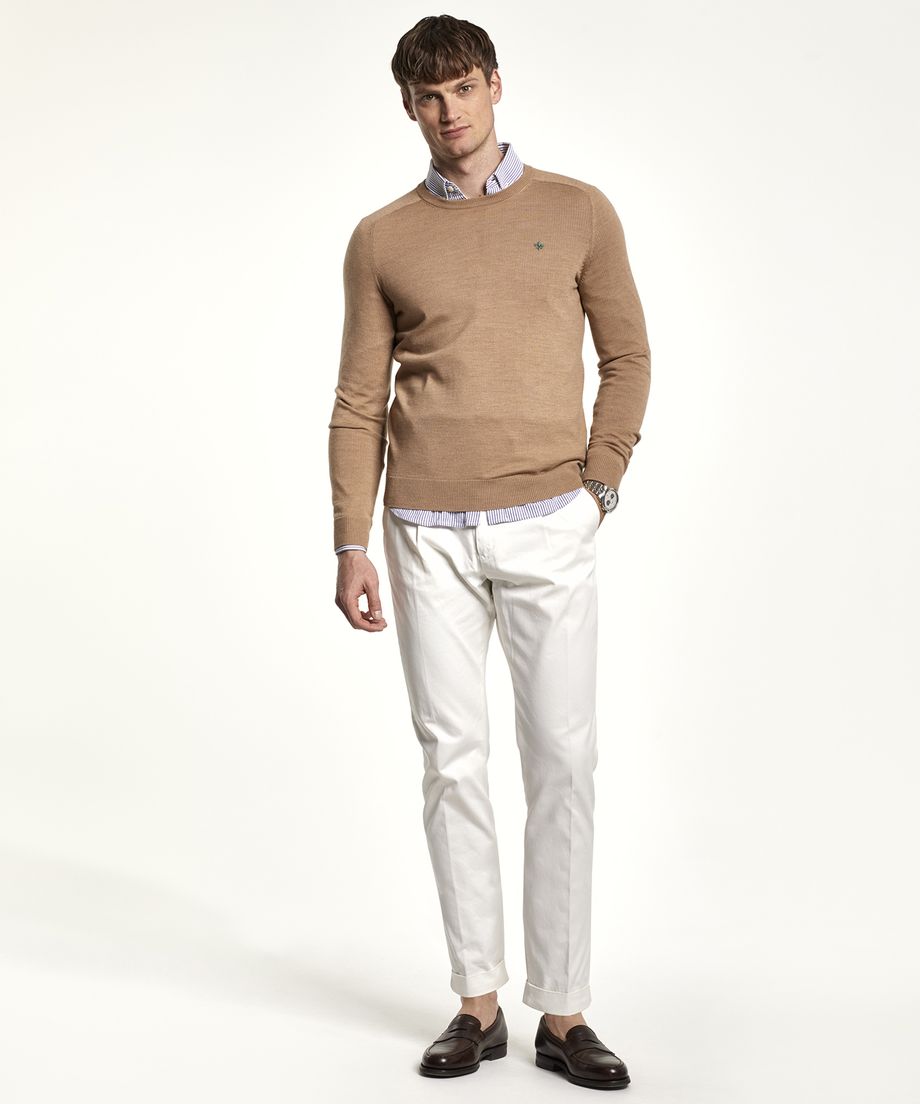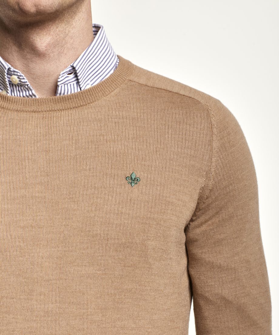 Knitted oneck made of our popular merino wool quality from Biella Südwolle. The sweater has ribs at cuff and bottom hem. Normal fit. Embroidered lily at left chest100% Merino WoolHand washThe model is 189 cm and wears size M.