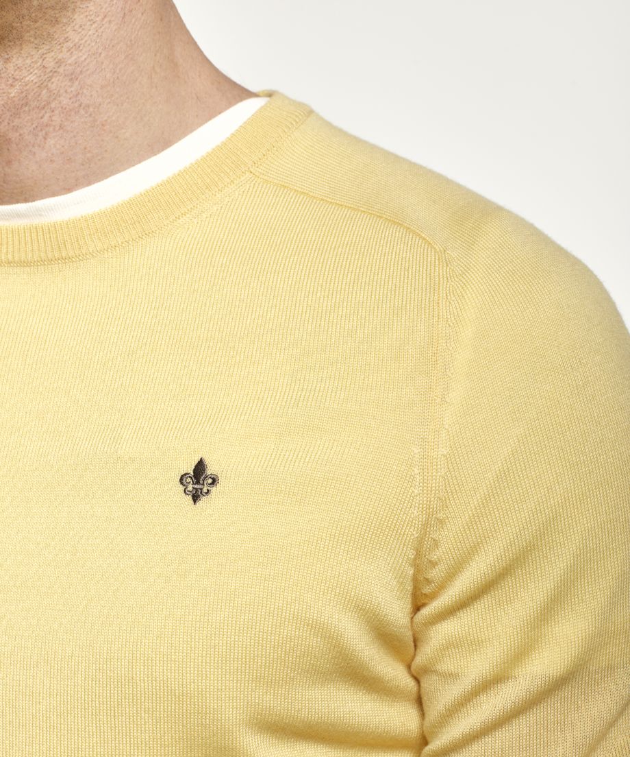 Knitted oneck made of our popular merino wool quality from Biella Südwolle. The sweater has ribs at cuff and bottom hem. Normal fit. Embroidered lily at left chest100% Merino WoolHand washThe model is 189 cm and wears size M.