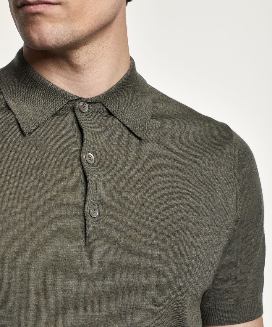Premium fine knitted polo shirt with collar and button placket. Made of an extra-fine and soft merino wool yarn from the Italian yarn producer Zegna Baruffa Lane Borgosesia. The polo shirt has short sleeve, ribbed cuff and bottom hem. The buttons on the polo shirt are made of real Mother of Pearl. Normal fit100% Merino WoolHand washThe model is 190 cm and wears size M.